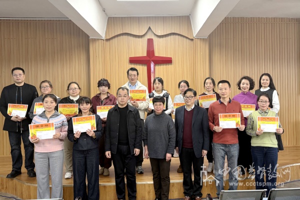 王红牧师、陈鼎亮牧师、贾海光牧师分别为专四班、专二班以及培训班各班成绩排名前五的同学颁发了奖状及奖学金。